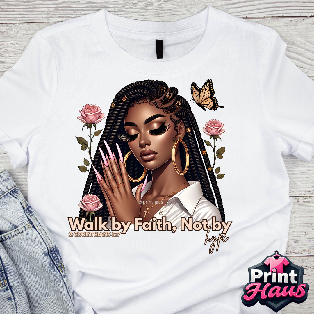 Wear your faith proudly with our Scripture & Strength T-Shirts from Print Haus 302. Each design features a beautiful illustration of a woman in prayer paired with a powerful short Bible verse, creating a look that’s both stylish and spiritually uplifting.